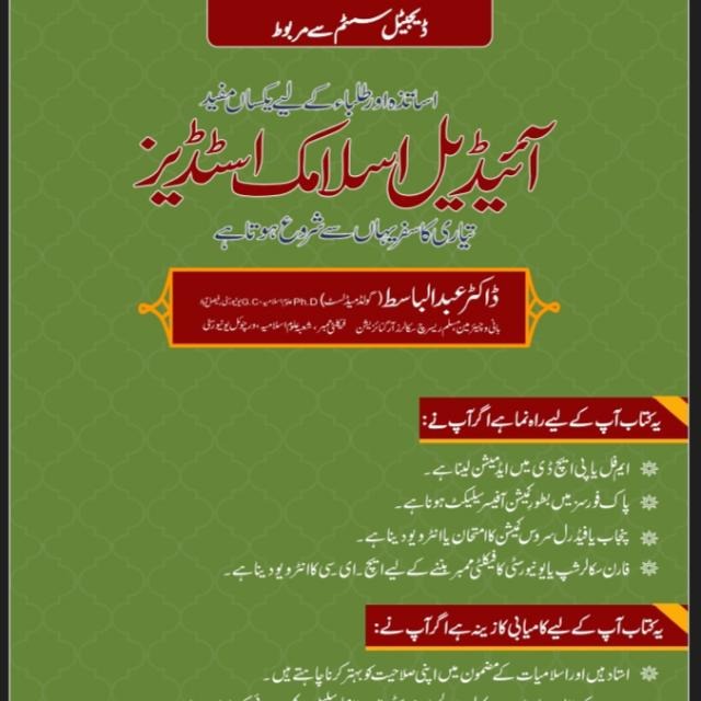 Dear Scholars: We are pleased to inform you that our latest & unique publication "Ideal Islamic Studies (Competitive Exams)" for preparation of competitive exams i.e PPSC, FPSC, NTS,GAT or HAT has been published. You can contact @ 0319-3831538 for further details.